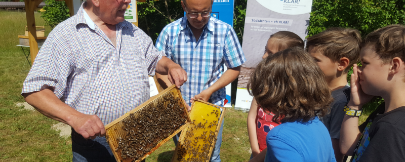 Dans le cadre du programme KLAR!-Südkärnten, la commune de Gallizien, membre d’Alliance, a lancé l’année dernière une initiative en faveur des abeilles, en coopération avec l’école primaire et l’association apicole locale. Tout au long de l'année scolaire 2018/19, les enfants de l’école ont travaillé sur le thème des abeilles et de l'apiculture. Le temps fort de l’année a été la mise en place d’un rucher école dans une prairie mise à disposition par la commune, l’objectif étant d’ouvrir cette thématique à un public aussi large que possible. Les ingrédients du succès de cette initiative : des participant(e)s engagé(e)s, en l’occurrence les membres de l'association apicole, les instituteurs/-trices et les enfants de l’école primaire, une commune motivée avec un maire particulièrement sensibilisé à la question, et l’implication de l’apiculteur Harald Jost, qui anime bénévolement des ateliers pour les enfants et supervise le rucher-école.