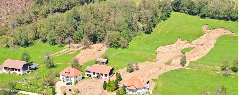 Cette introduction peut paraître alarmiste, mais regardons l'exemple de la région de l'Alliance Carinthie du Sud - Karawanken, qui a été dramatiquement touchée cette année. En juillet, une tempête a causé des dégâts se chiffrant à plusieurs millions en raison de quelque 300 000 mètres cubes de chablis. Tout juste trois semaines après, une forte pluie accompagnée de grêle a causé d’énormes dégâts aux cultures et détruit la récolte de pommes et de poires dans une grande partie de la région. Puis, quelques jours plus tard, début août 2023, une dépression du golfe de Gênes (nomenclature internationale Petar) accompagnée de précipitations extrêmes dans les Karawanken a provoqué de gigantesques dommages aux infrastructures suite à des glissements de terrain et des boues torrentielles. Une montée exceptionnelle du niveau de la nappe phréatique a provoqué d'innombrables inondations dans les caves.
