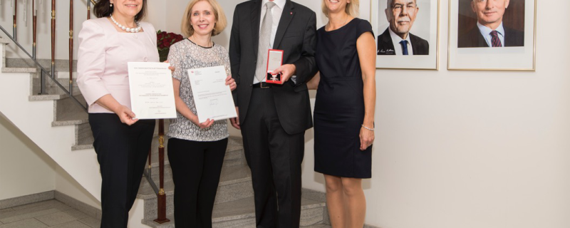 Freddy Kaiser a été mis à l’honneur : le Maire de Mauren/FL a été décoré « Chevalier d’argent de l’ordre du Mérite autrichien » par l’ambassadrice d’Autriche au Liechtenstein, Madame Maria Rotheiser-Scotti, une distinction qui récompense son engagement au service de la coopération transfrontalière. La cérémonie de remise de l’insigne a eu lieu le 29 septembre 2017 dans les bureaux du Consulat honoraire autrichien à Mauren, en présence de la famille du maire et de la Consule honoraire d’Autriche au Liechtenstein, Madame Rita Kieber-Beck. « L’Autriche et le Liechtenstein sont unis par une relation étroite de voisinage et de partenariat », a souligné l’ambassadrice Maria Rotheiser-Scotti, venue spécialement de Vienne pour la cérémonie.
